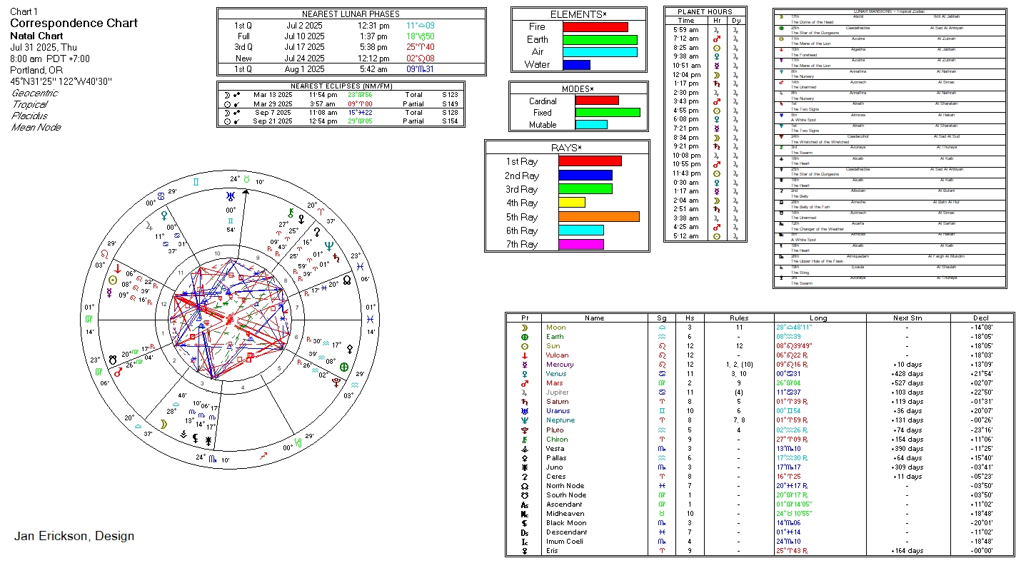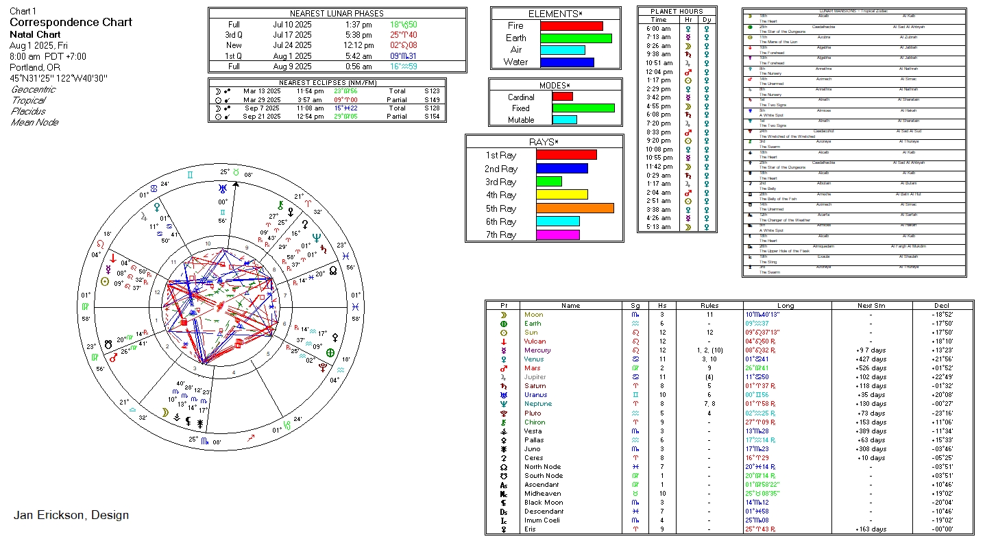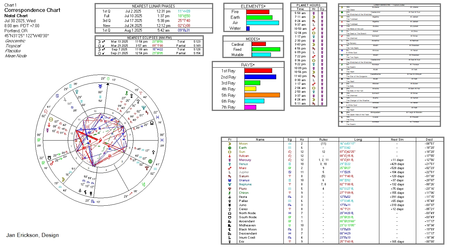 - Lunar Phase: Waxing, Wx, 1st Qtr at 5:42a, 09°Sc31