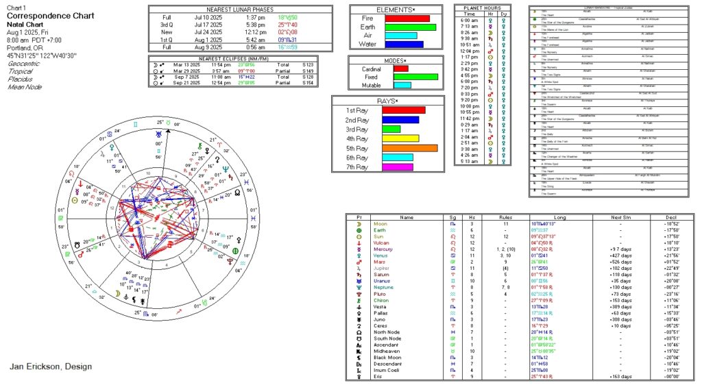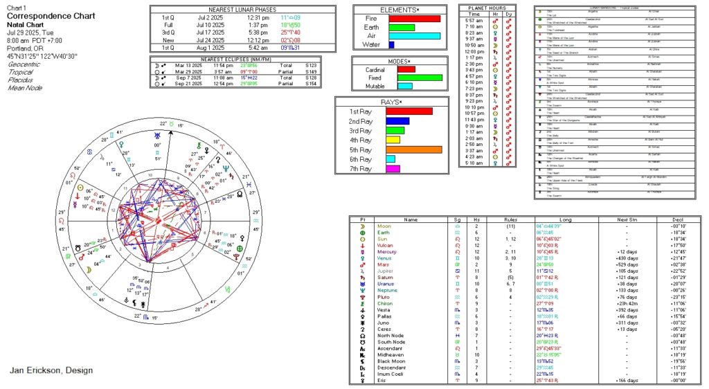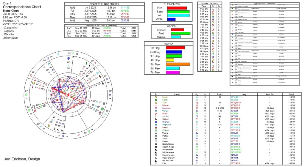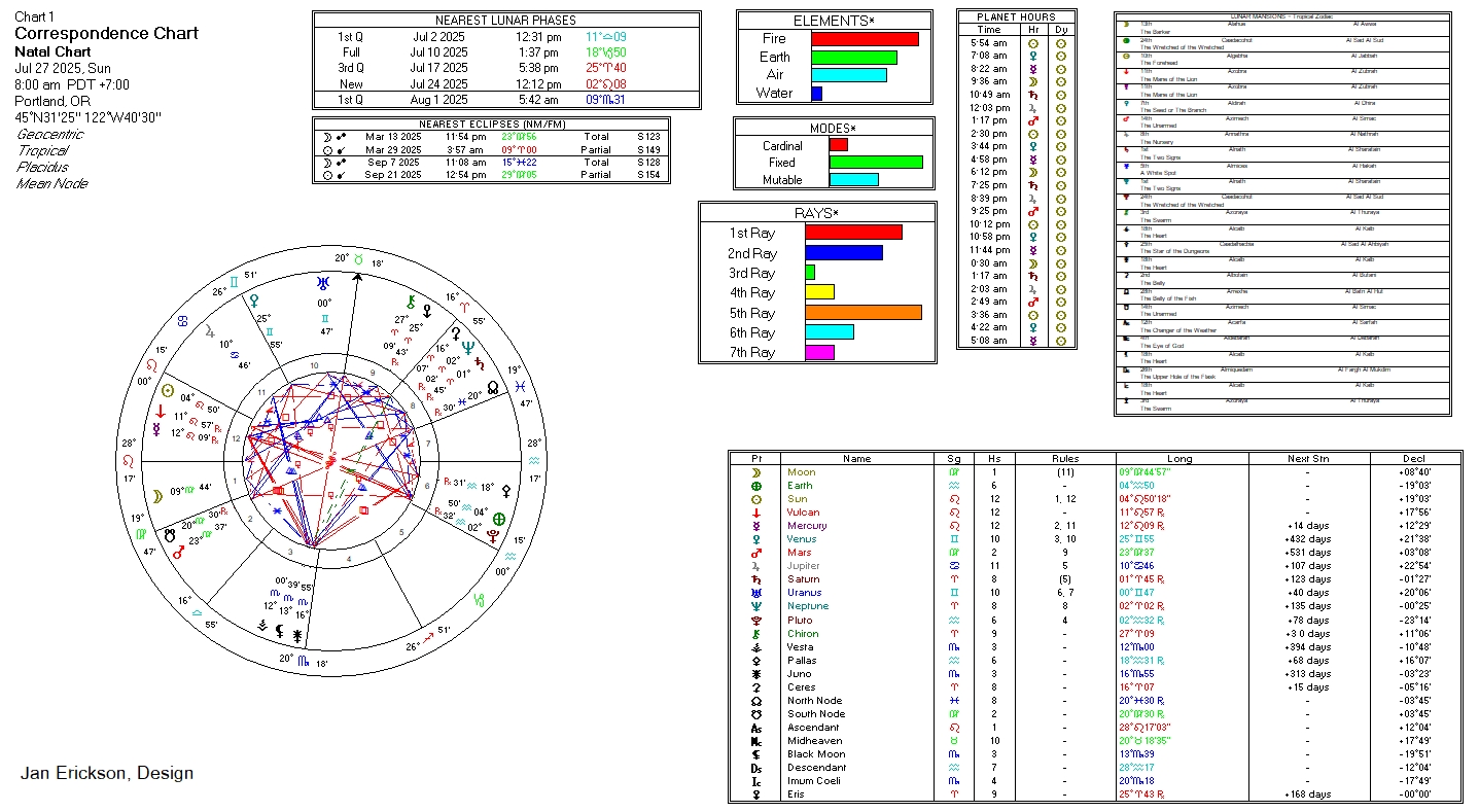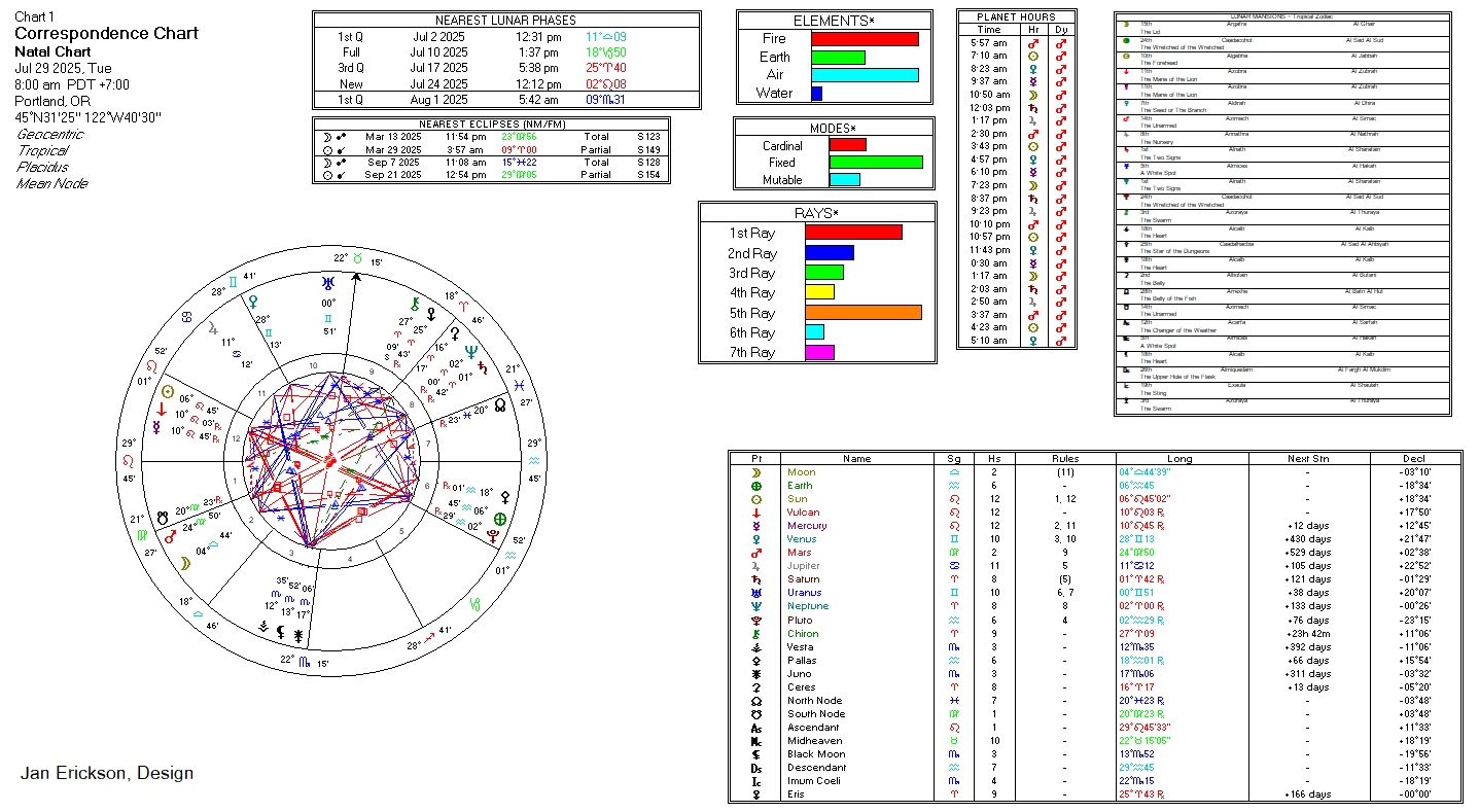 - Lunar Phase: Waxing, Wx, 1st Qtr at 5:42a, 09°Sc31