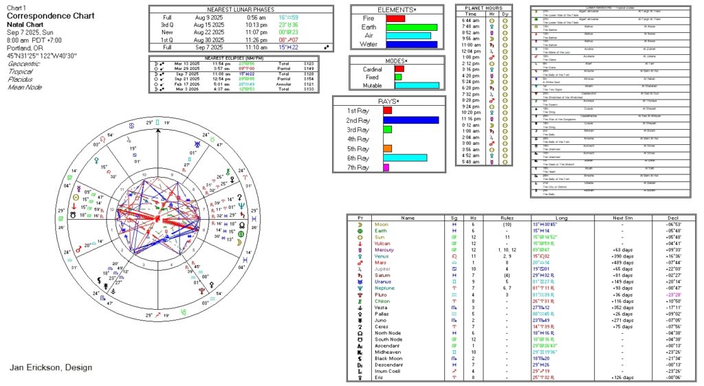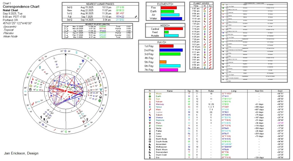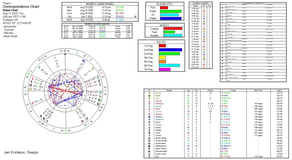 - Lunar Phase: Waxing/Gibbous; Full at 11:08a, 15°Pi22; Lunar Eclipse