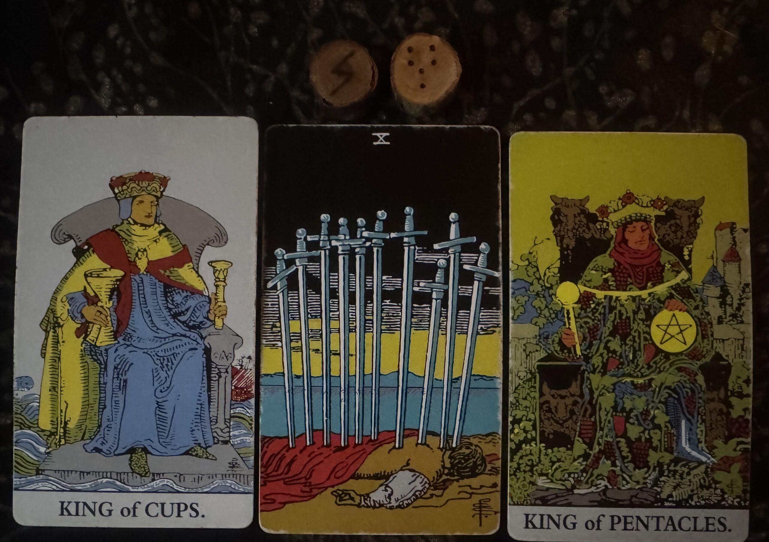 - Cards: King of Cups, 10 of Swords, King of Pentacles