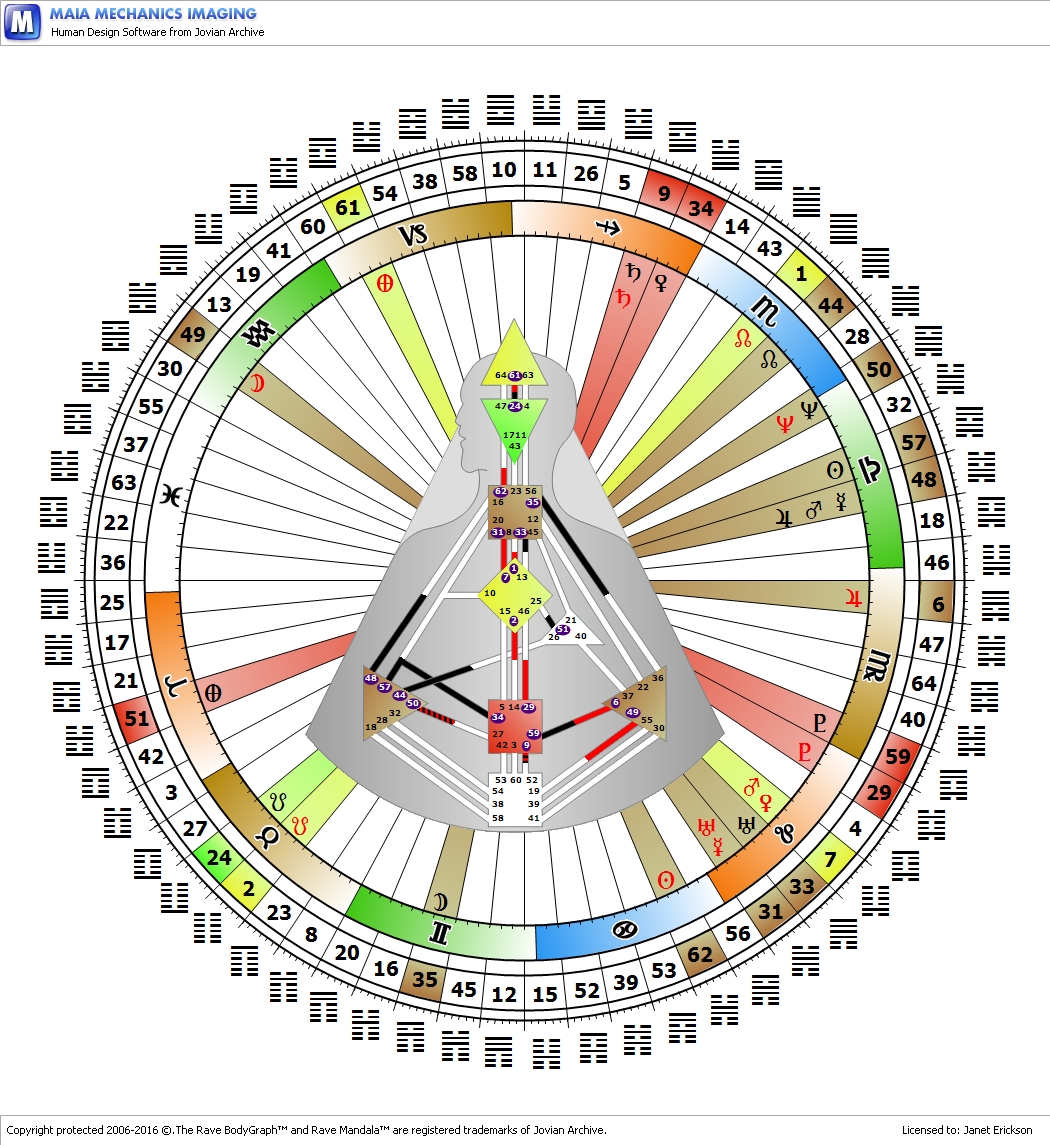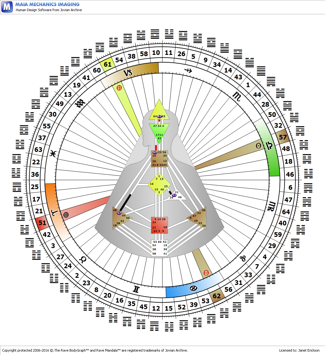 The Godhead is found by looking at where on the Human Design Rave chart an individual’s Personality Sun lies. In my case, it lies in the quarter of duality at Gate 57 Intuition. In my bodygram (Human Design chart) Gate 57 creates a channel with Gate 34 Power called The Channel of the Archetype.