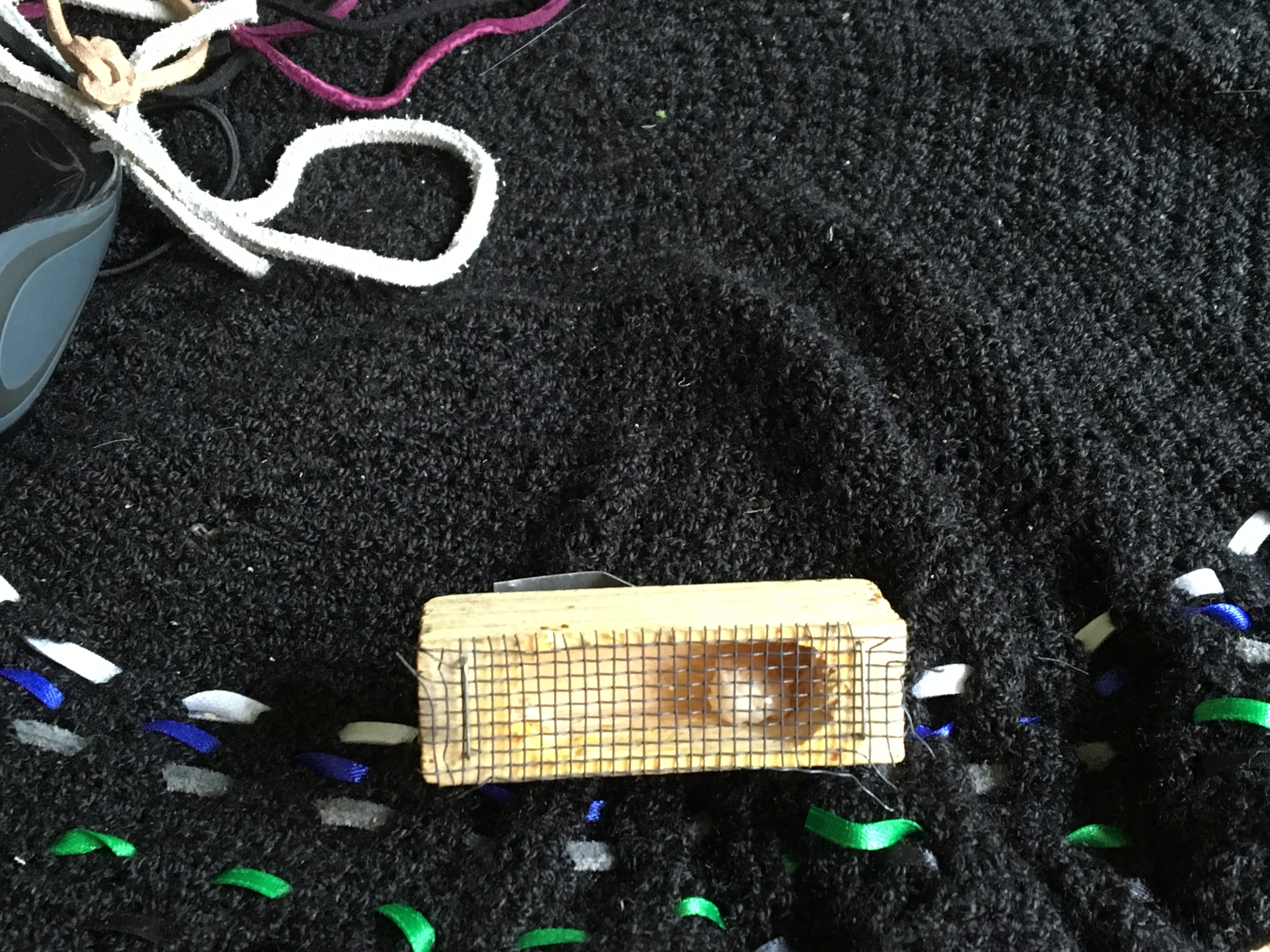 After dumping the bees into the Warre’ box, I located the queen cage and dug out the cork plug to insert a small marshmallow. I placed the queen back in on the bottom of the hive. You can release the queen directly, but this way, they have to work to get to her, increasing the chance that she’ll be accepted. Odds are, however, that process has already taken place while in the package.