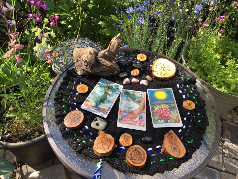 It was such a beautiful morning that I decided to do the reading out in my sacred space. It’s an area next to one of the ponds where I can perform ritual, work magick, or simply sit and commune with life in and around the pond.